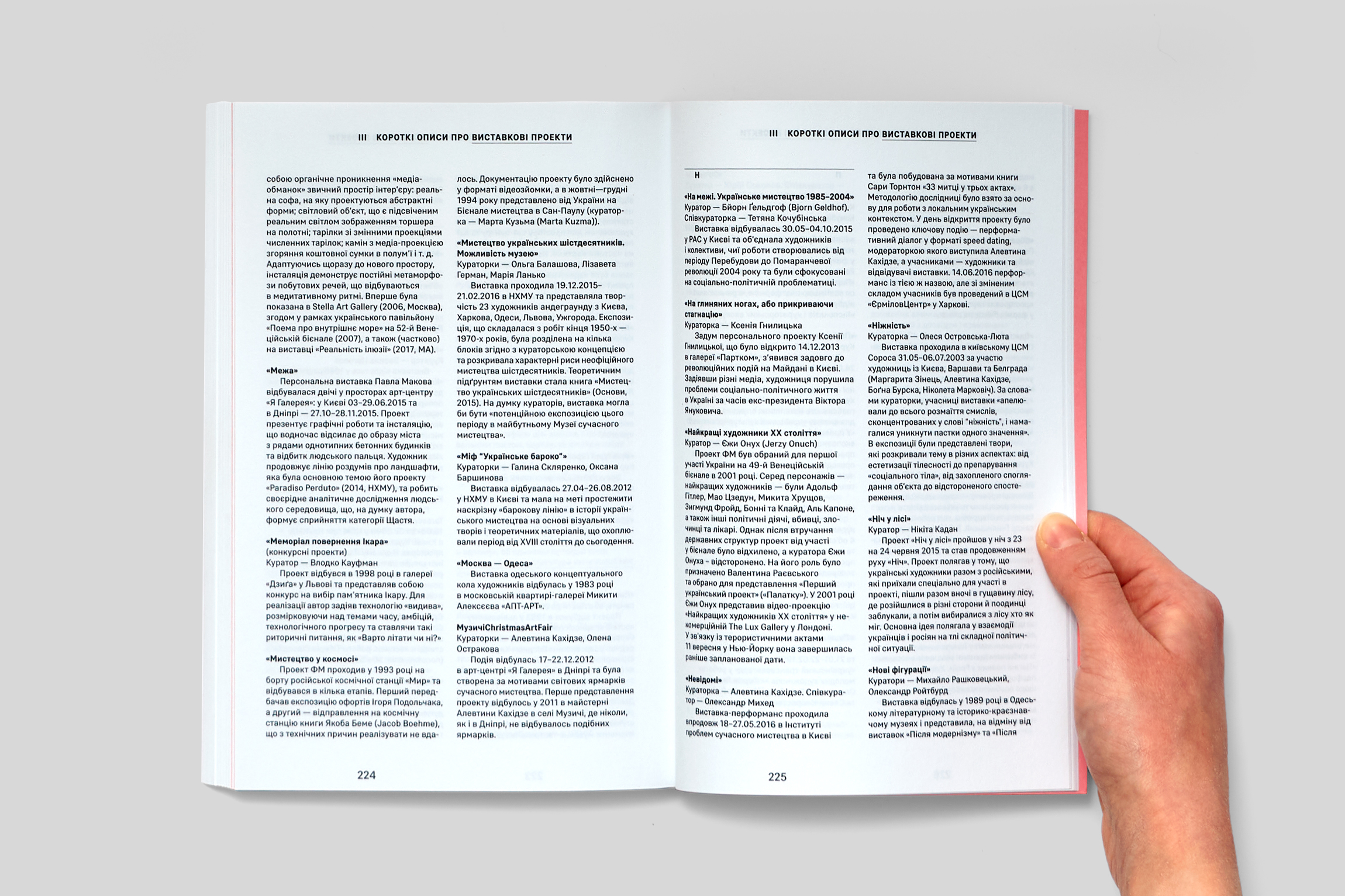 Тексти, що увійшли до видання, стали результатом обговорення зазначеної теми авторками-упорядницями із кураторами та художниками з різних міст України, які мають досвід як взаємодії з кураторами, так i власноï кураторськоï практики. У книжці представлені тексти на основі інтерв'ю з такими художниками та кураторами як: Відкрита група (Юрій Білей, Антон Варга, Павло Ковач, Станіслав Туріна), Фонд Мазоха (Ігор Дюрич, Ігор Подольчак), Юрій Лейдерман, Арсен Савадов, Леся Заяць, Микола Рідний, Ксенія Гнилицька, Лада Наконечна, Микита Кадан, Алевтина Кахідзе, Олександр Ройтбурд, Тіберій Сільваші, Сергій Братков, Юрій Соколов, Влодко Кауфман, Микола Коломієць, Павло Маков, Олександр Соловйов.