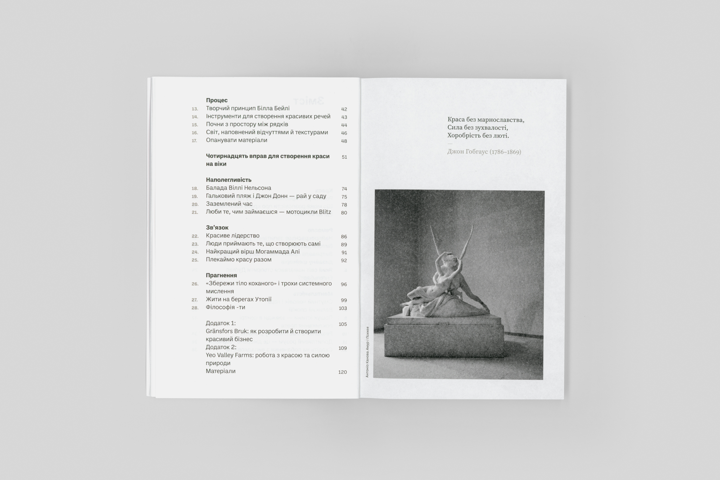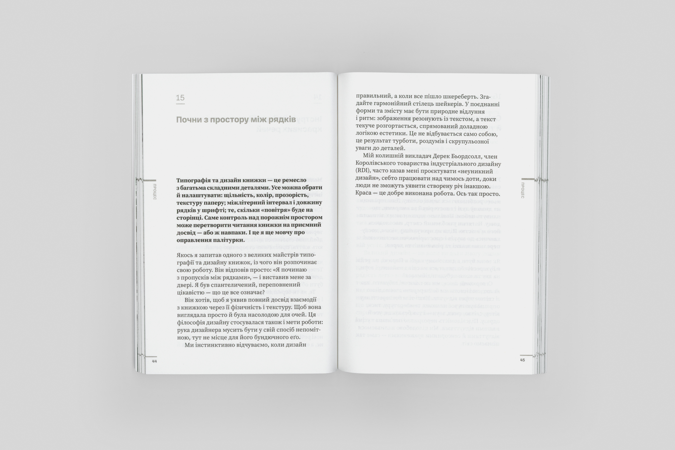 Поглинуті роботою, серед постійної багатозадачності й шалених ритмів, ми схильні механізувати процес творення, позбавляти його естетичної й ціннісної граней. Почасти це спокуса раціоналізації й спрощення, оскільки на те, щоб вихоплювати красу й зосереджувати на ній увагу, потрібні додаткові сили й час, яких тепер у нас зазвичай бракує. Однак тільки зупиняючись і відсторонюючись періодично від робочої метушні, озираючись на свої напрацювання поглядом, завжди готовим до пошуку нового й ґрунтовного — тільки так ми здатні відчувати правдиве піднесення й поновлювати запал.
