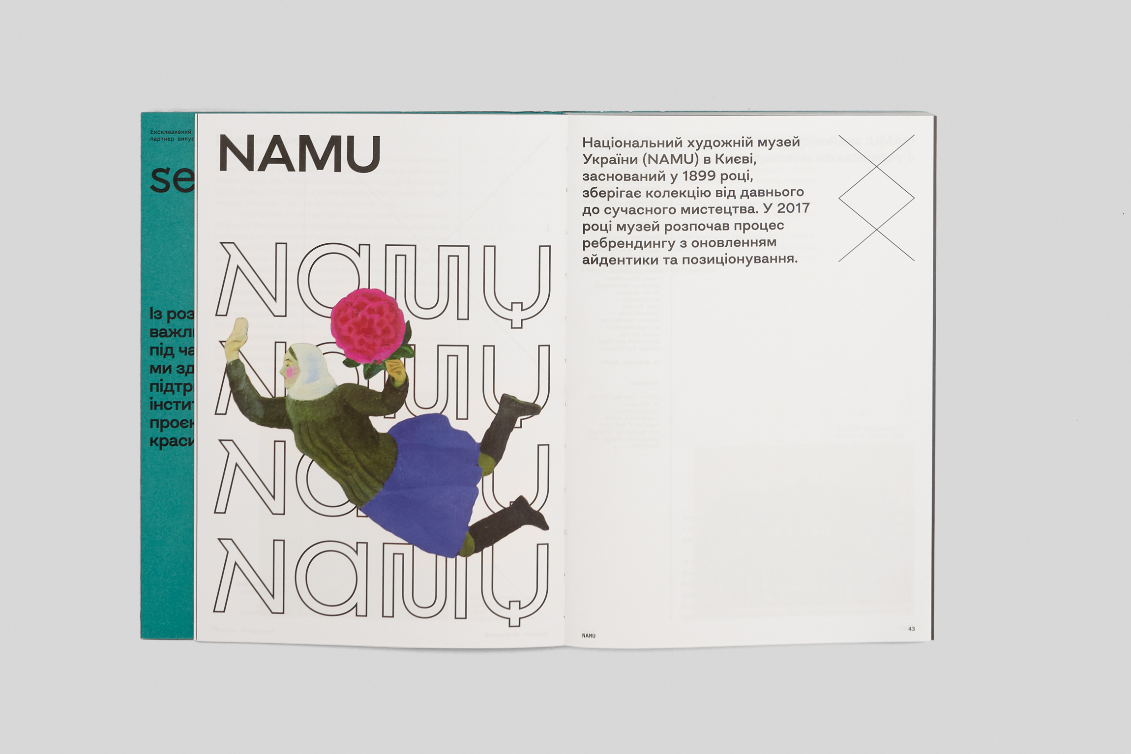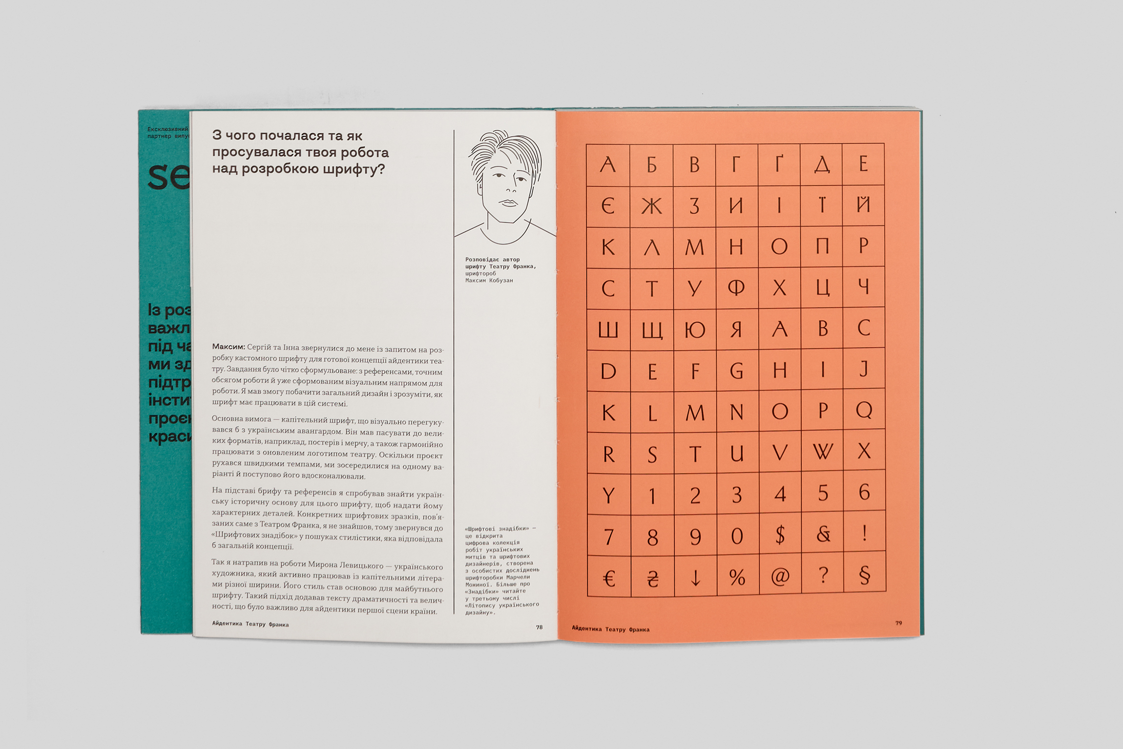 У фокусі: Анатоль Петрицький, чия сценографія надихала навіть Пікассо; айдентика Театру Франка, що задала тон сучасному театральному ренесансу; візуальна мова «Українського театру», створена разом із шрифтовиком Дмитром Растворцевим; проєкт айдентики NAMU від агенції Banda; шрифтова спадщина Василя Хоменка, завдяки якому у 1969 році з’явилась друкована «Енеїда» з ілюстраціями Базилевича (про яку теж ціла дизайн історія). Окрема частина присвячена сучасності: MEGOGO, мандрівному артпростору MOT (Module of Temporality), фестивалям Brave та Docudays UA, а також візуальній айдентиці Євробачення-2017.