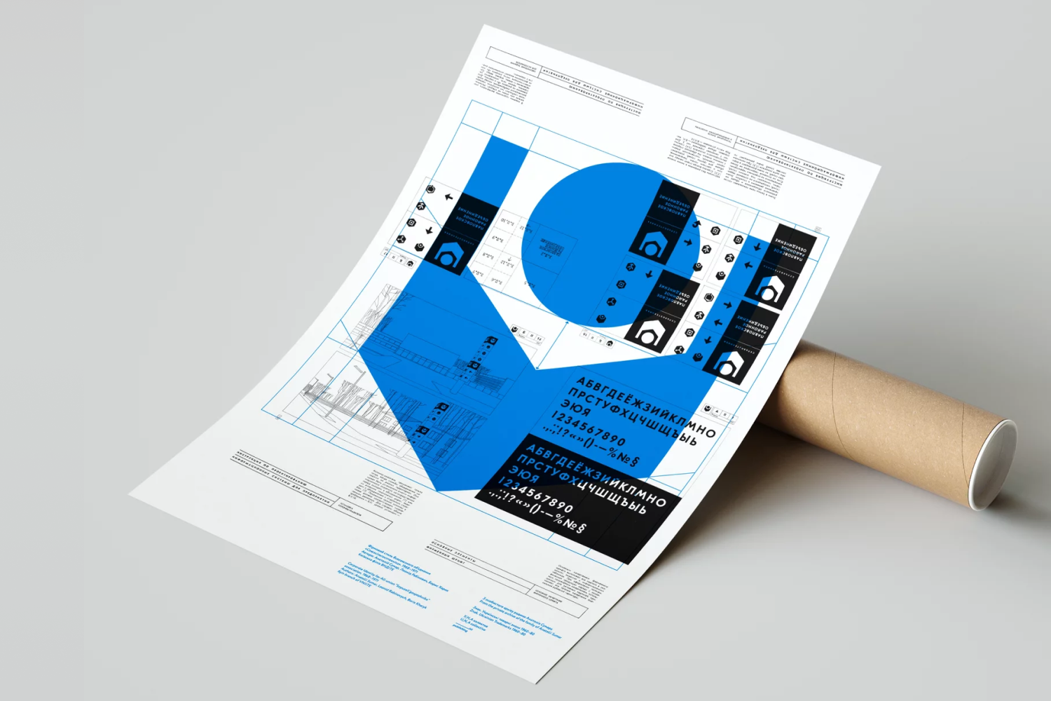 У,Н,А колектив вирішили приєднатися до авторської групи й додали кольорові нашарування — зелене та синє — до цього графічного аркуша. У цей спосіб дизайнерки досліджують композиційні властивості промислової графіки 1970-х років та можливості друку.