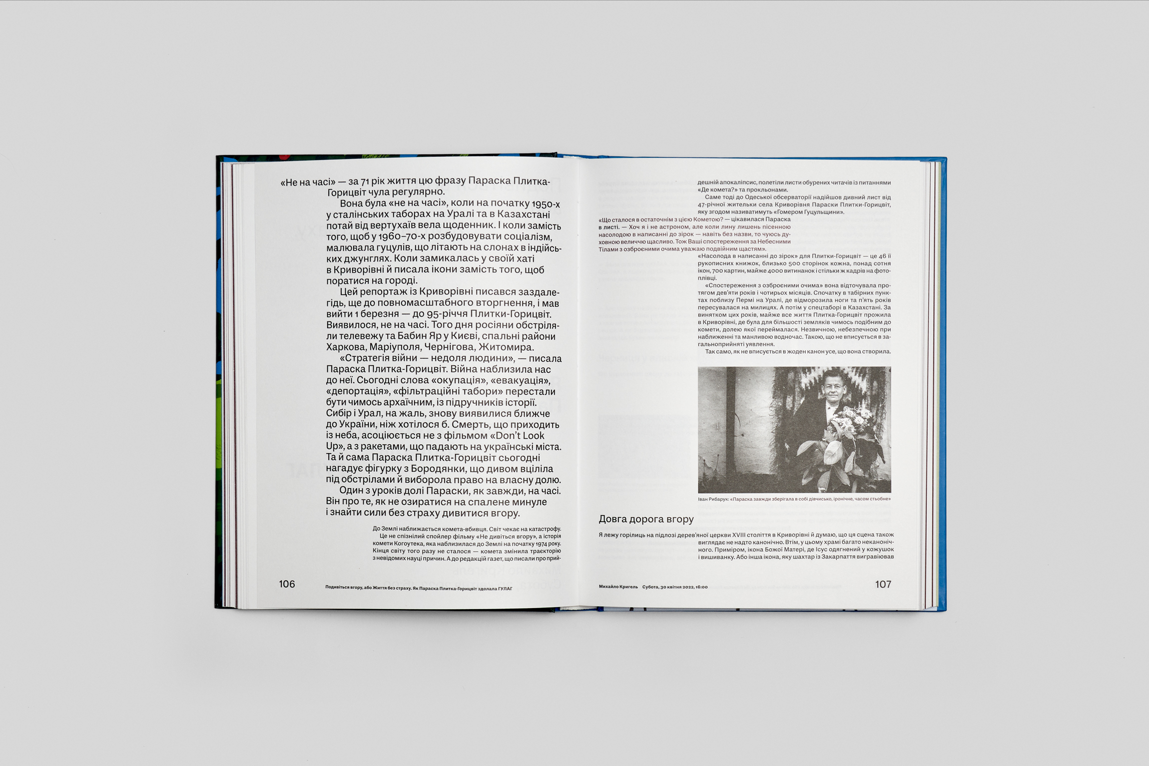У книжці лише кілька десятків із сотень тисяч текстів, що виходили на сторінках сайту в різні роки. Це спроба не загубити в потоці часу і калейдоскопі новин сенси, які роблять нас тими, ким ми є.